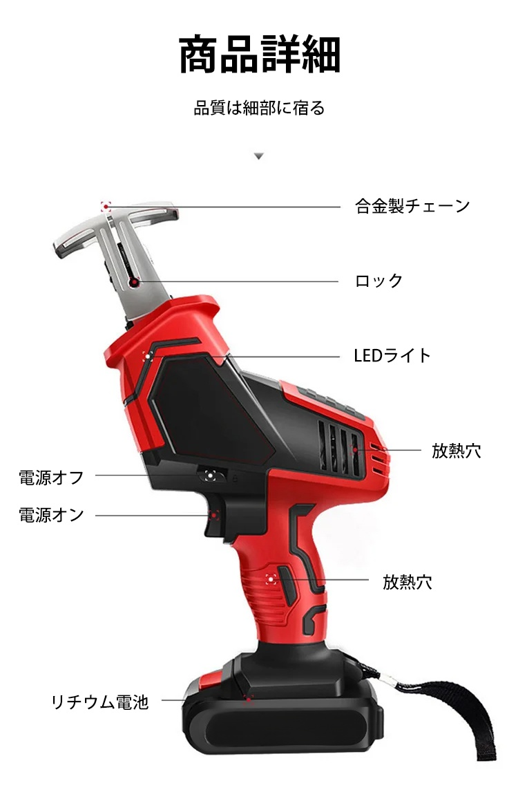充電式電動ノコギリのバッテリー部分のアップ画像